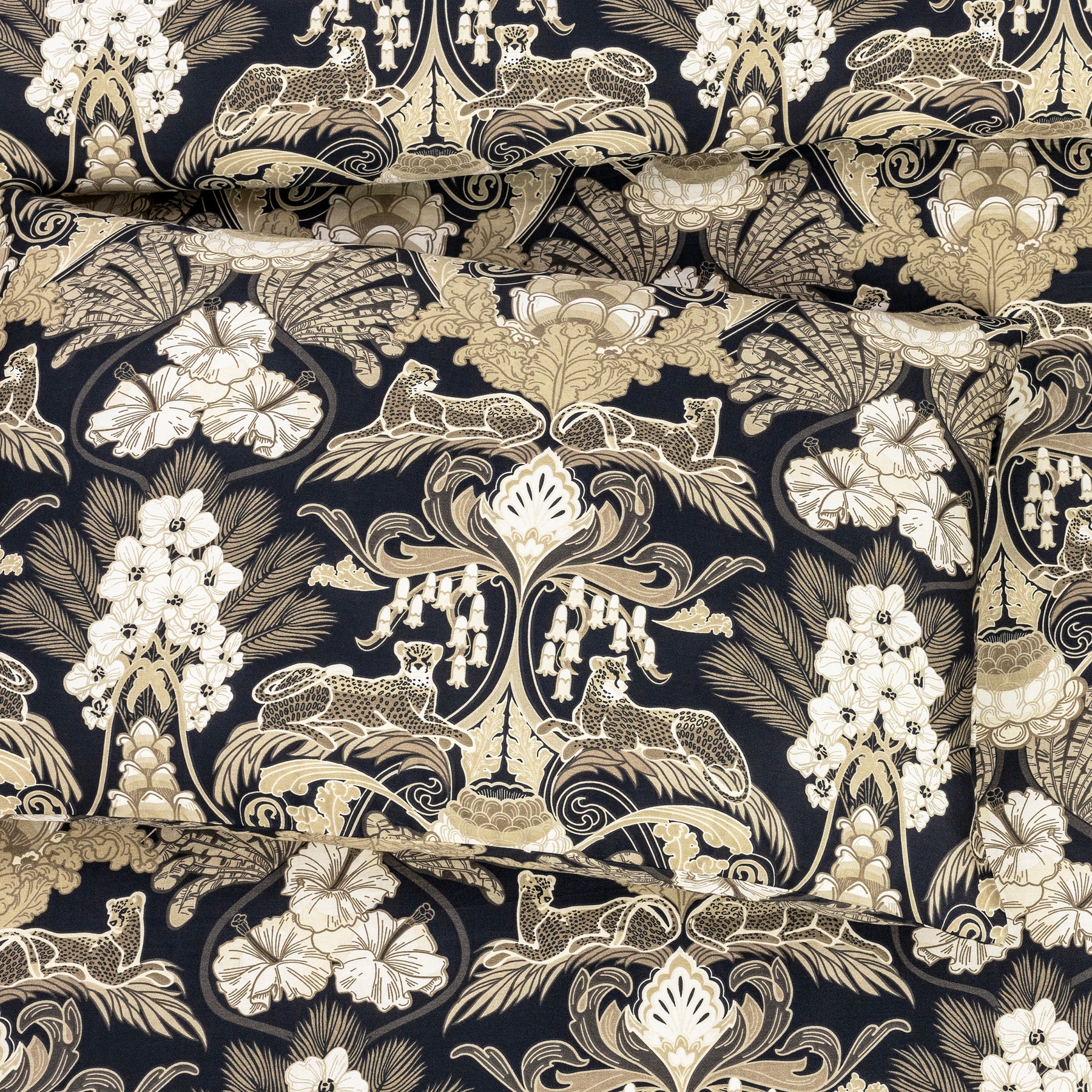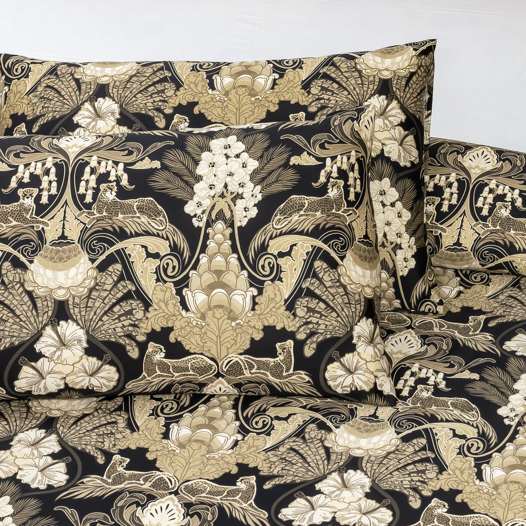 Royal King Bedsheet Set – Add a luxurious touch to your room with this black and gold bedsheet featuring elegant foliage and wild cat patterns. Made from premium soft fabric for lasting comfort and style. Includes matching pillowcases for a complete look. Easy to wash and perfect for modern home décor.