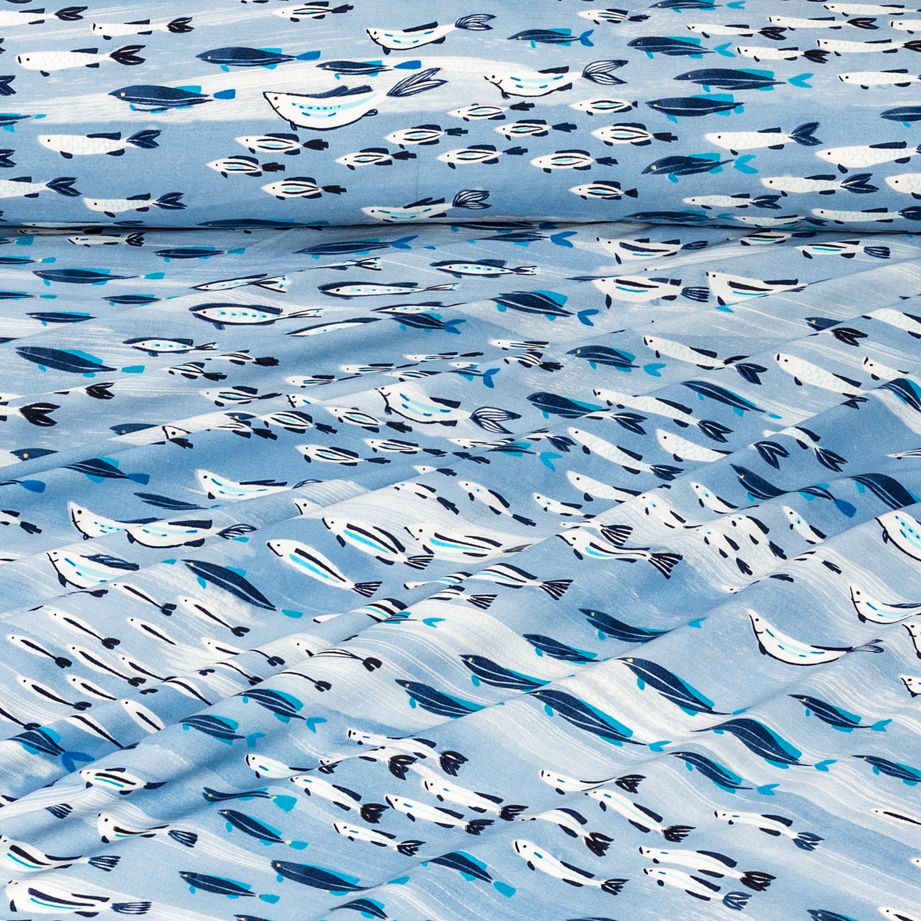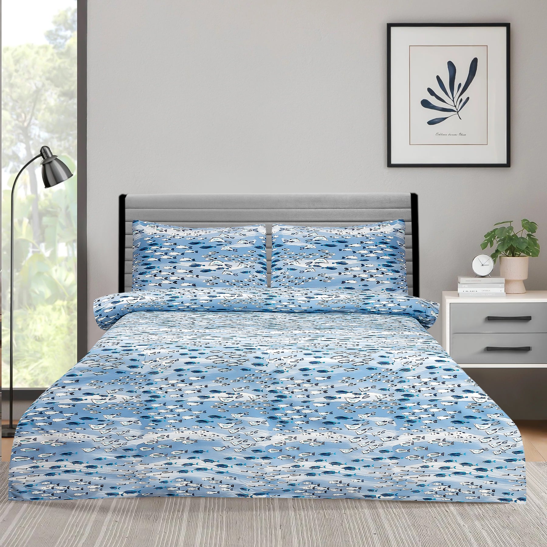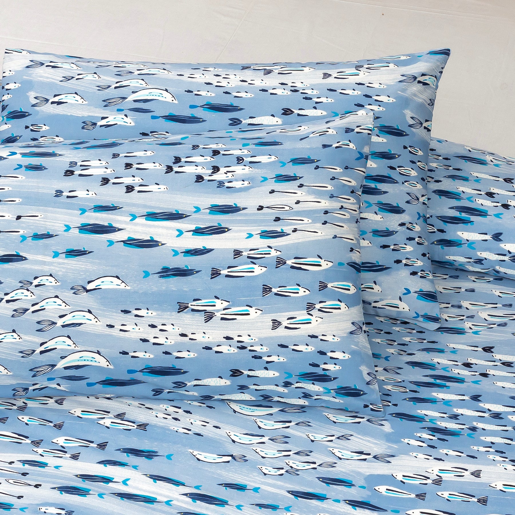 Sea Life Bedsheet  – Bring coastal vibes to your room with this ocean-inspired bedsheet featuring charming blue and white fish patterns on a soothing sea-light base. Made from soft, breathable fabric for ultimate comfort and style. Includes matching pillowcases, fade-resistant, and easy to wash — perfect for modern coastal décor and refreshing bedroom makeovers.